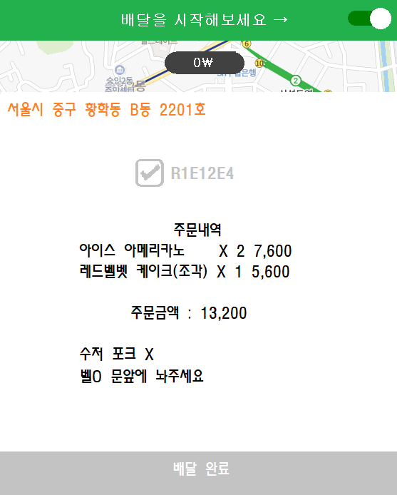 개인정보 보호로 쿠팡이츠 배달파트너 앱에서는 캡처가 불가능해서 이미지를 최대한 비슷하게 만들어 구성해서 실제와는 차이가 날 수 있습니다.